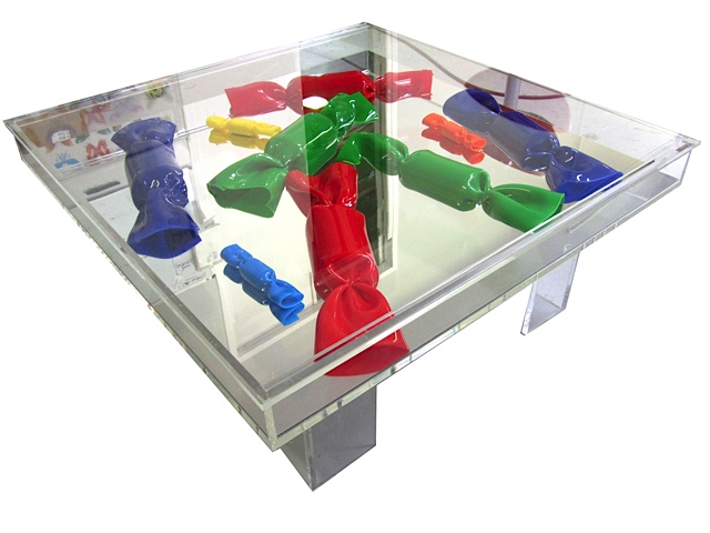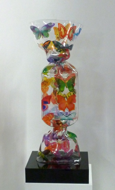 Après différentes investigations, elle parvient à maîtriser et dominer la matière plexiglas, pour obtenir la technique du Wrapping qui va lui permettre de réaliser la sculpture BONBON qui l’obsède depuis de nombreuses années.