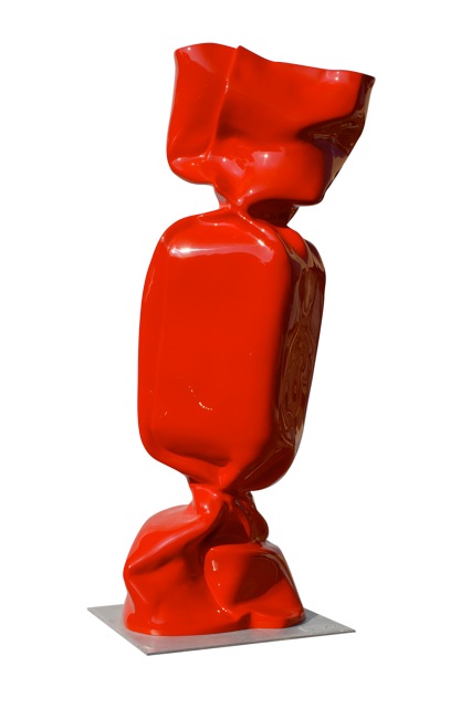 Le wrapping, littéralement l’enroulement de la matière, associée à la torsion de la papillote fait de ses sculptures des oeuvres uniques. Peu à peu, l’artiste va décliner cet objet symbolique dans d’autres matières comme le marbre, le bronze, l’aluminium ou le polyester. Sujet universel, le bonbon de Laurence Jenkell n’est pas seulement symbole de douceur, il est aussi torsion, drapé, enchevêtrement et résistance.
